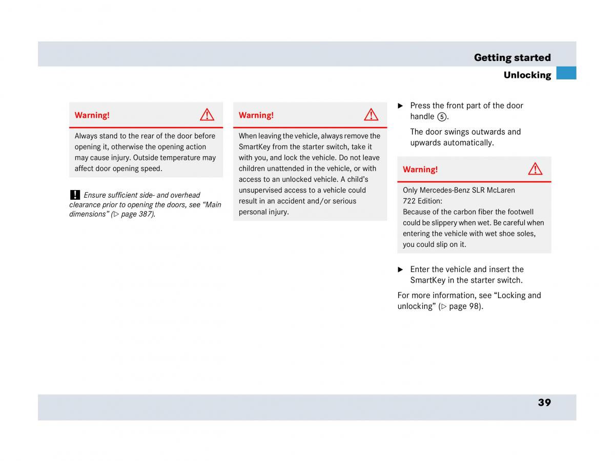 from owners manual to the vehicle Mercedes SLR, year of production 2003 - 2009: