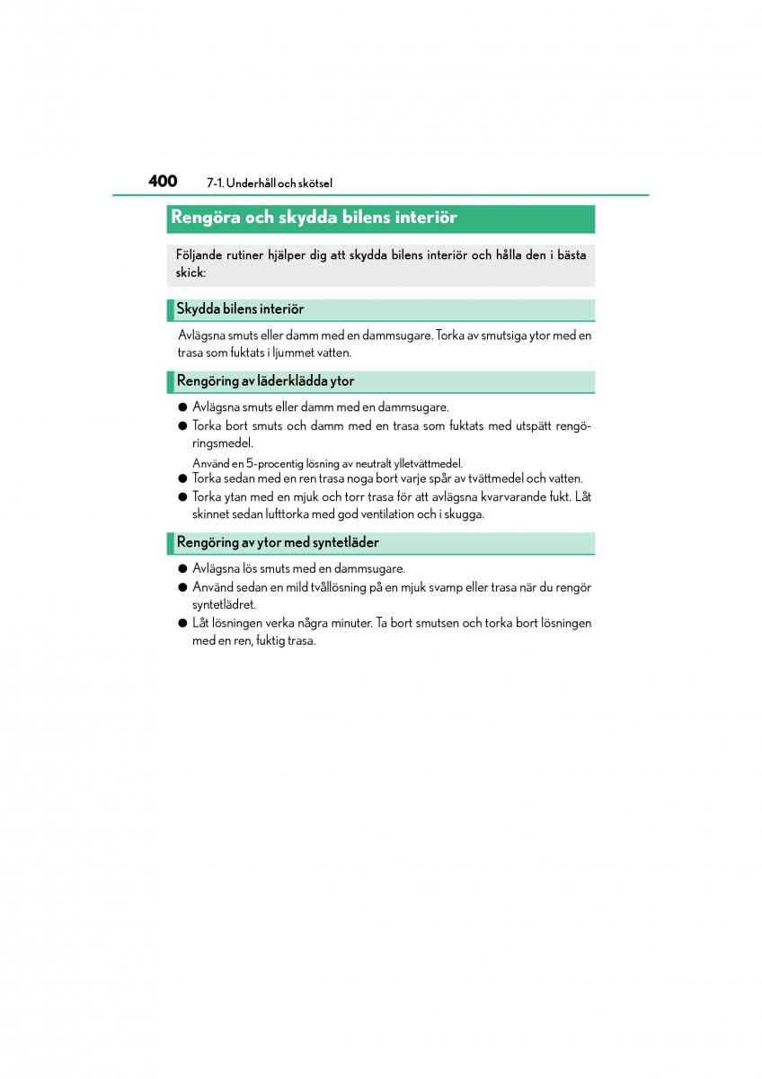 Följande rutiner hjälper dig att skybilens interiör ocdda h hålla den i bästa