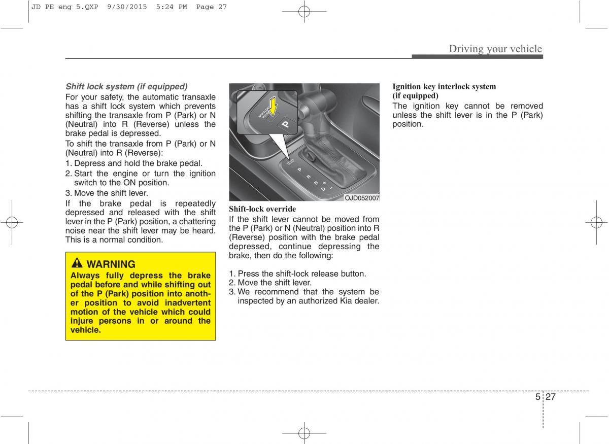 shifting the transaxle from P (Park) or N unless the shift lever is in the P (Park)