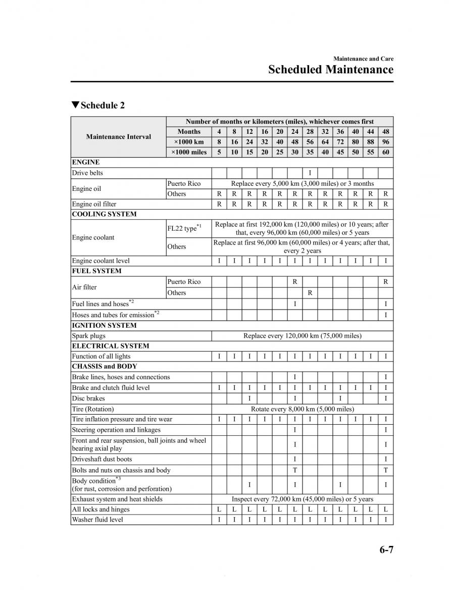 *1 Replace at first 192,000 km (120,000 miles) or 10 years; after