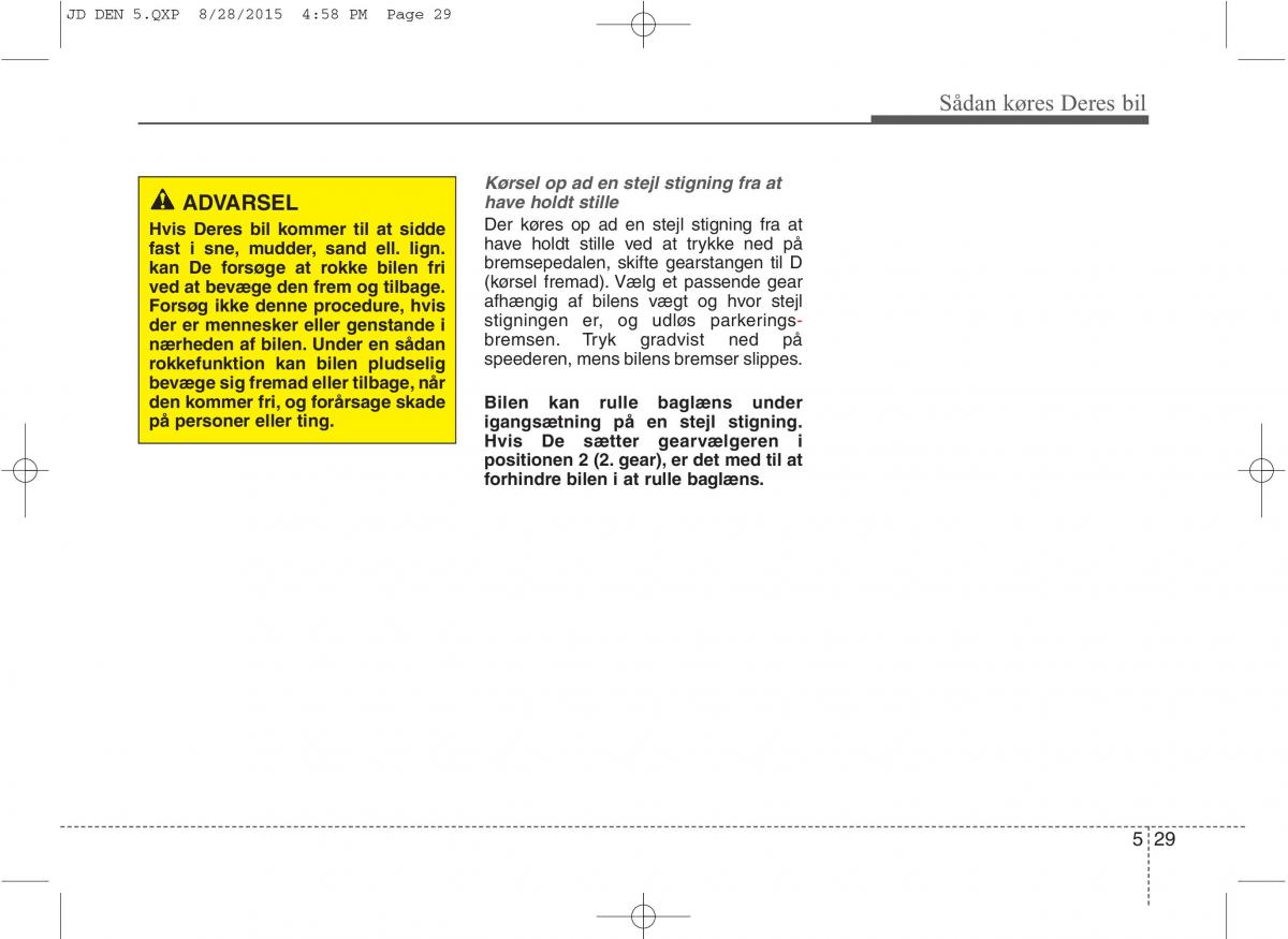den kommer fri,og forårsage skadeBilen kan rulle baglæns under