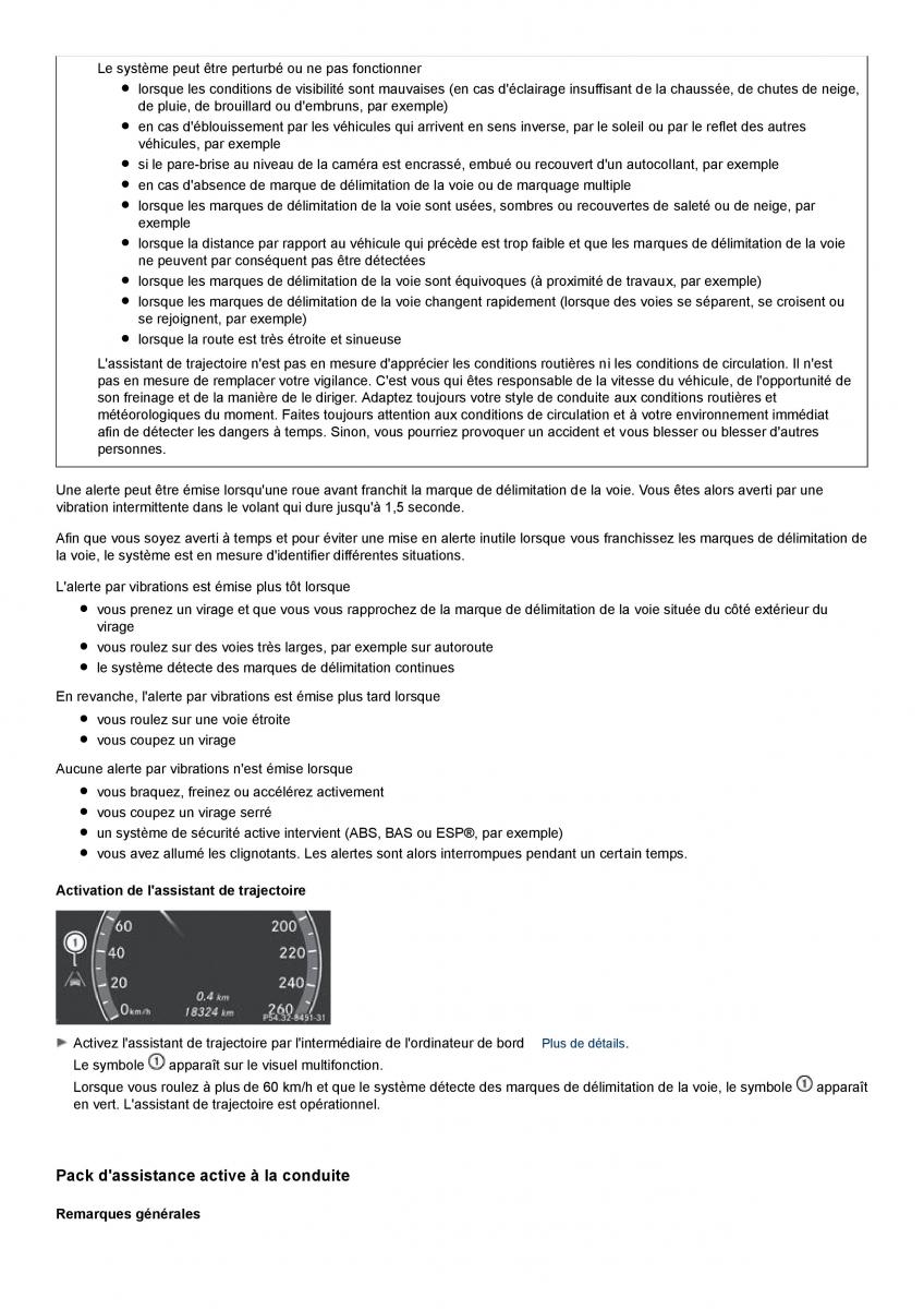 L'assistant de trajectoire n'est pas en mesure d'apprécier les conditions routières ni les conditions de circulation. Il n'est