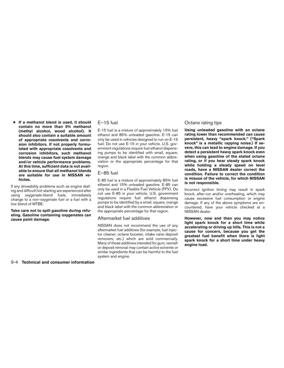 abletoensurethatallmethanolblendsE–85fuel roads, have a NISSAN dealer correct the