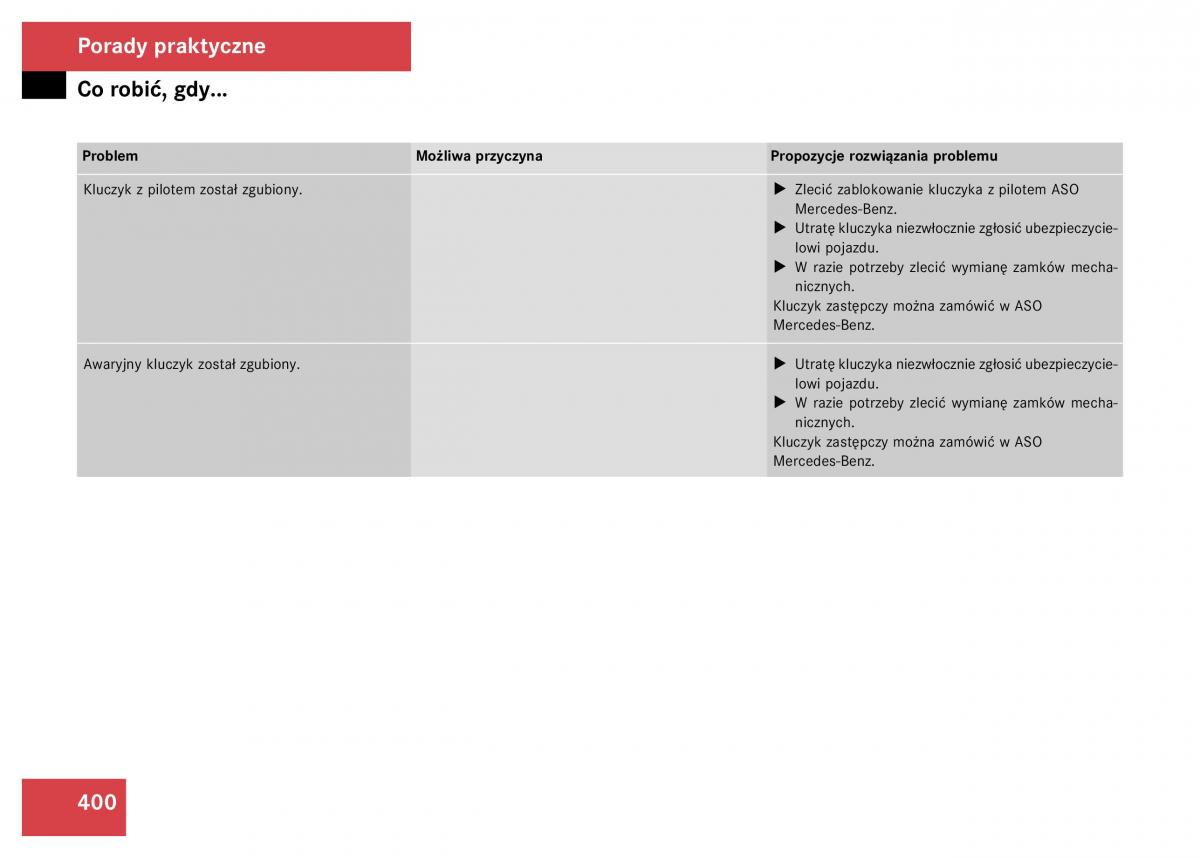 Kluczyk z pilotem zosta³ zgubiony. X Zleciæ zablokowanie kluczyka z pilotem ASO