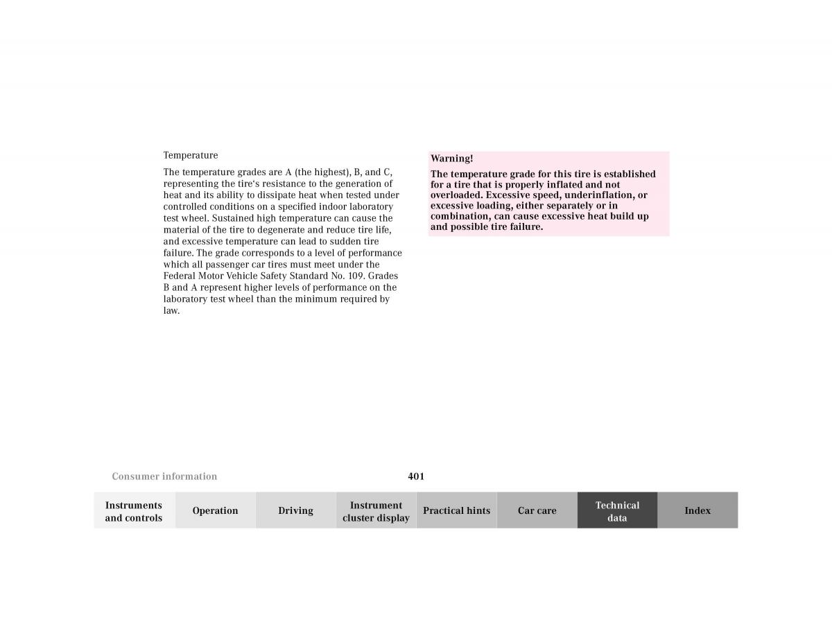 The temperature grades are A (the highest), B, and C, The temperature grade for this tire is established