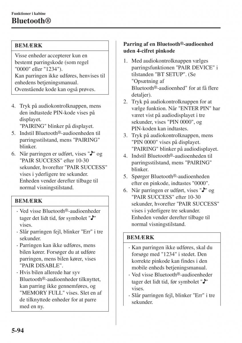 "0000" eller "1234"). tilstanden "BT SETUP". (Se
