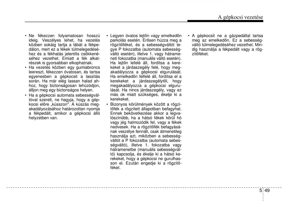 Ne fékezzen folyamatosan hosszú Legyen óvatos lejtőn vagy emelkedőn A gépkocsit ne a gázpedállal tartsa