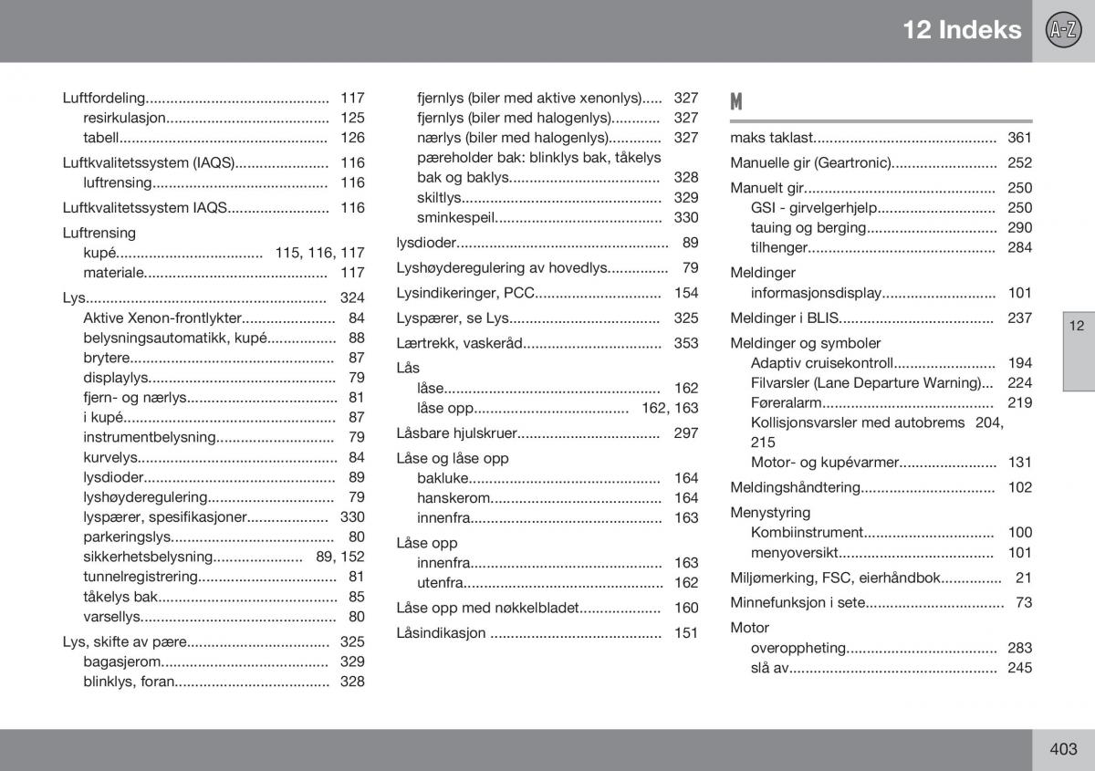 tabell.126nærlys (biler med halogenlys).327maks taklast.361