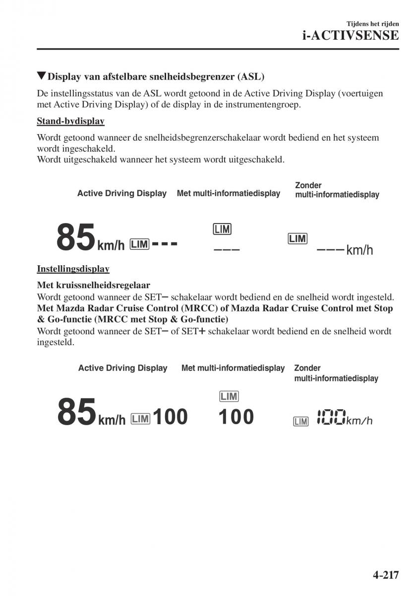 instellingsstatus van de ASL wordt getoond in de Active Driving De Display (voertuigen