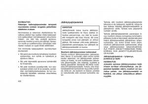 • Älä täytä jäähdytysnesteen laajennussäiliötätöä varten. Jos termostaatti täytyy vaihtaa,järjestelmän varoitusvalon sytyttyä.