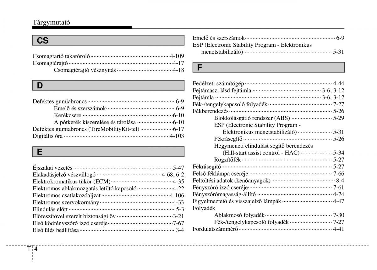 A pótkerék kiszerelése é tárolása ·······················6-10 ESP (Electronic Stability Program -
