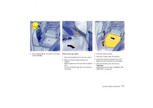 the left seat cushion in a vertical position and fold 4. Pull seat cushion forward (arrow B).