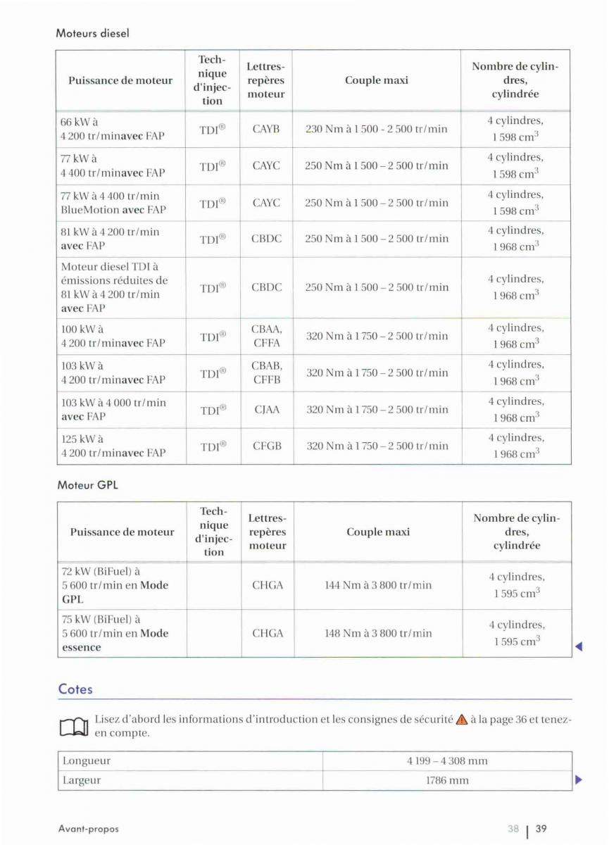 103 kW à 4 000 tr/min TDI® ClAA 320 Nm à 1750 - 2 500 Ir/min 4 cylindres,