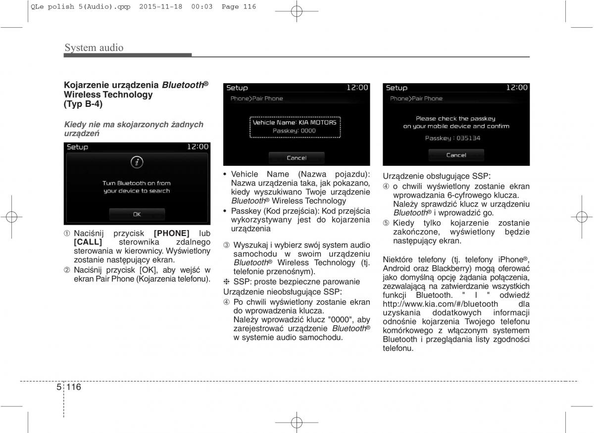 Passkey (Kod przejścia): Kod przejścia Bluetooth® i wprowadzić go.
