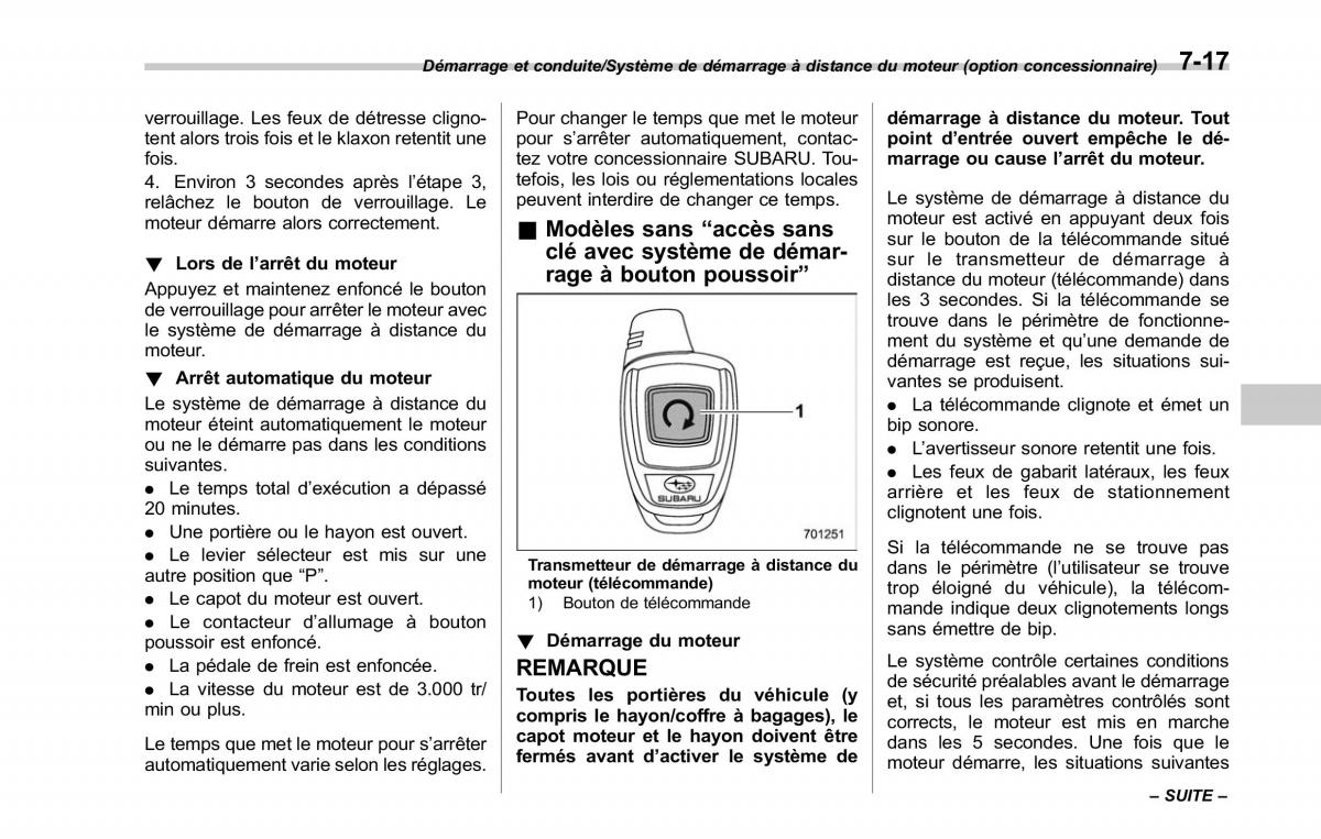 Démarrage et conduite/Système de démarrage à distance du moteur (option concessionnaire)7-17