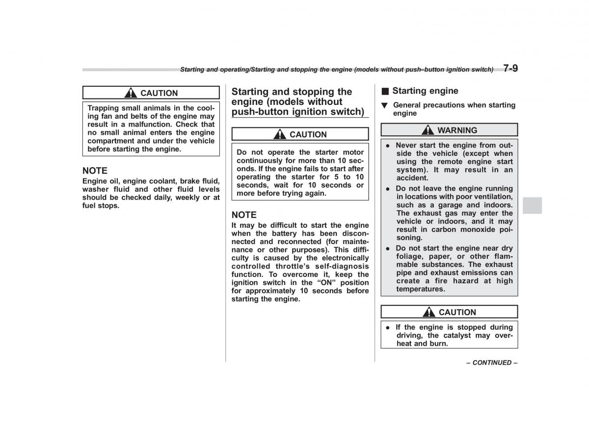 Starting and operating/Starting and stopping the engine (models without push–button ignition switch)7-9
