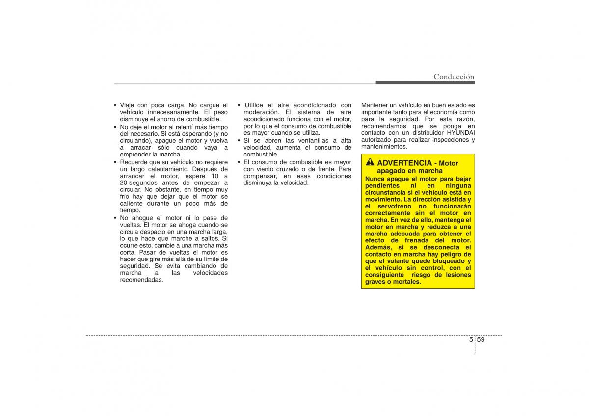 • Recuerde que su vehículo no requiere • El consumo de combustible es mayorADVERTENCIA - Motor