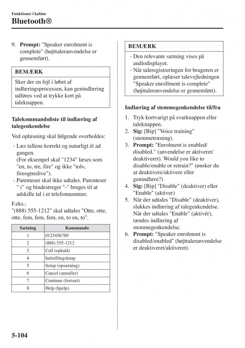 9. Prompt: "Speaker enrolment is BEMÆRK