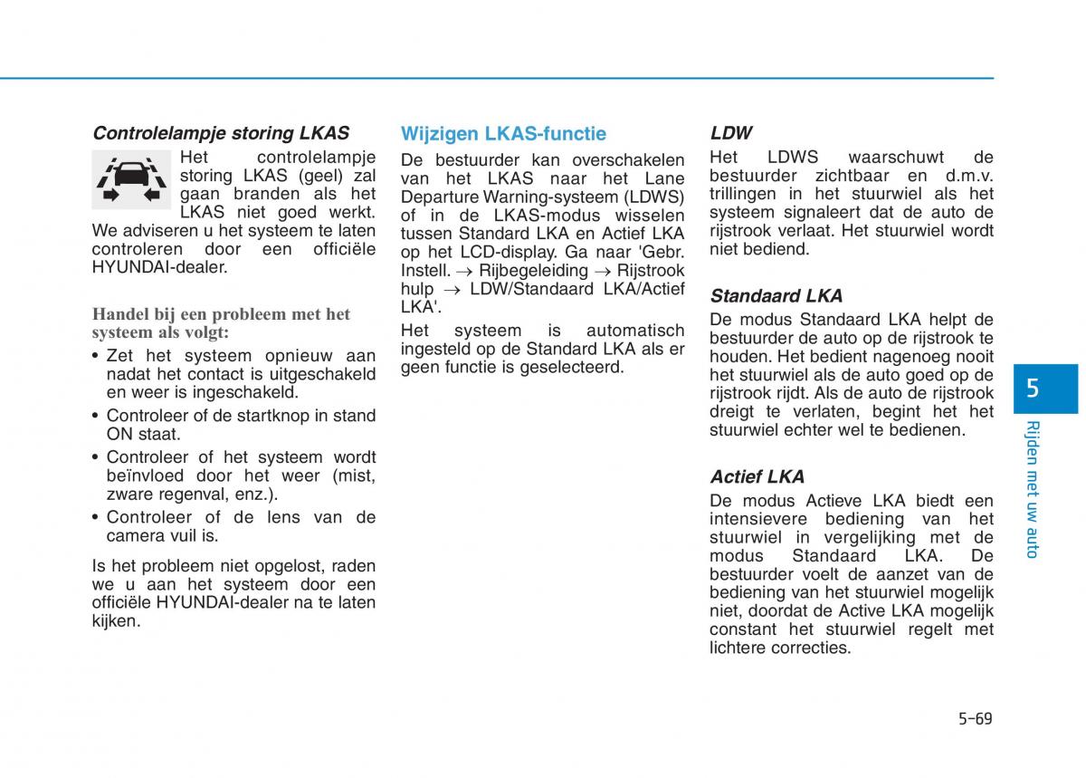 storing LKAS (geel) zal bestuurder zichtbaar en d.m.v.