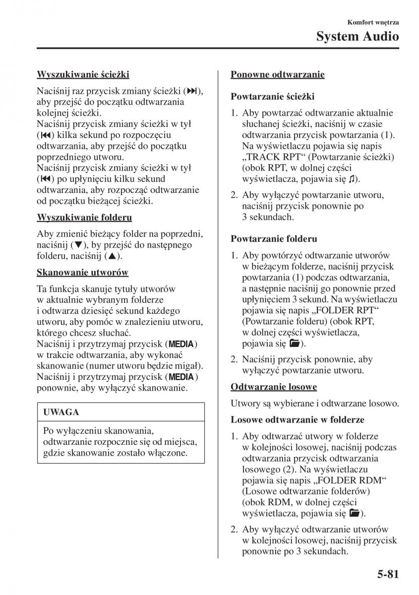 folderu, naciĞ nij ( ). 1. Aby powtórzyü odtwarzanie utworów