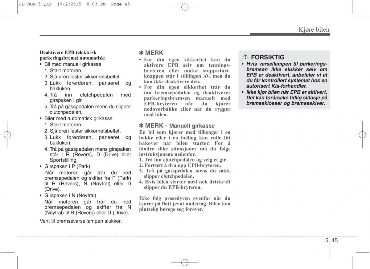 Deaktivere EPB (elektrisk ✽✽ MERK FORSIKTIG