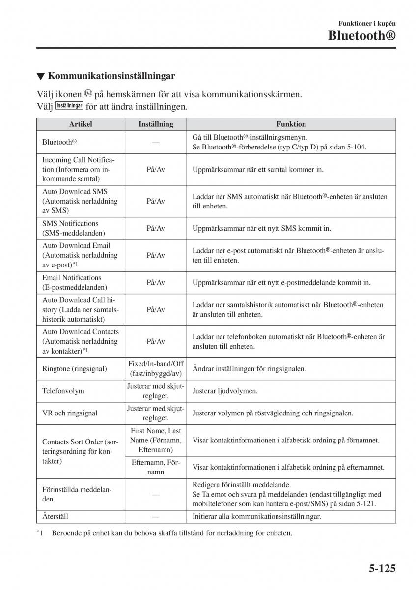 (Automatisk nerladdningPå/Av Laddar ner telefonboken automatiskt när Bluetooth -enheten är