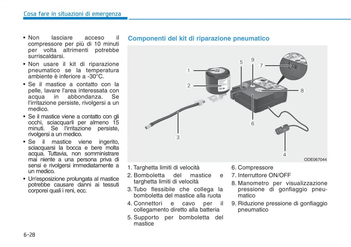sensi e rivolgersi immediatamente a1.Targhetta limiti di velocità 6. Compressore