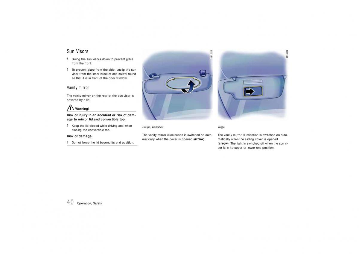 f Keep the lid closed while driving and when Coupé, Cabriolet Targa