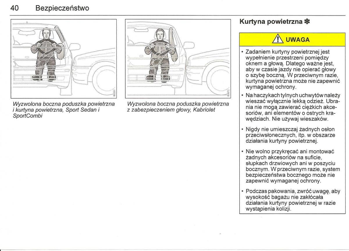 Wyzwolona boczna poduszka powietrznaWyzwolona boczna poduszka powietrznawieszac wylqcznie lekkq odziez. Ubra-