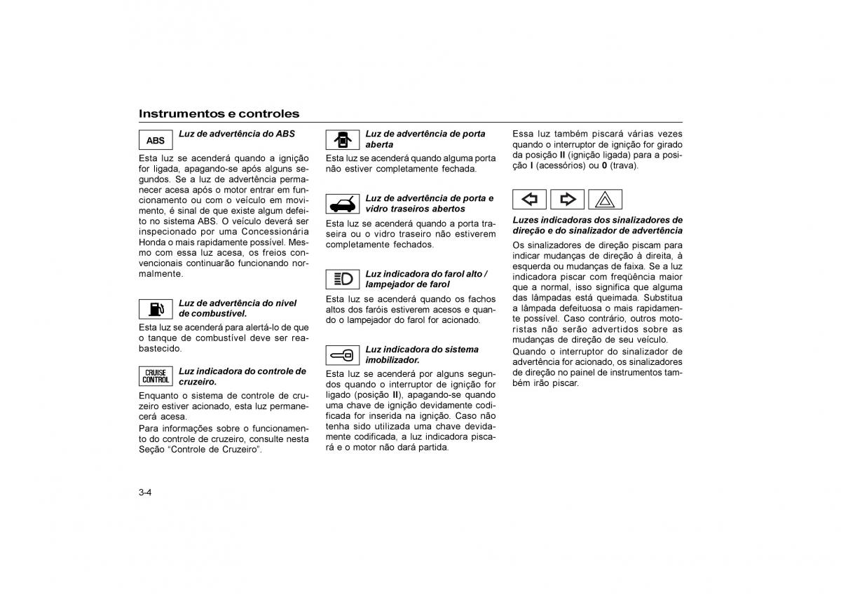 Luz de advertência do ABS Luz de advertência de portaEssa luz também piscará várias vezes