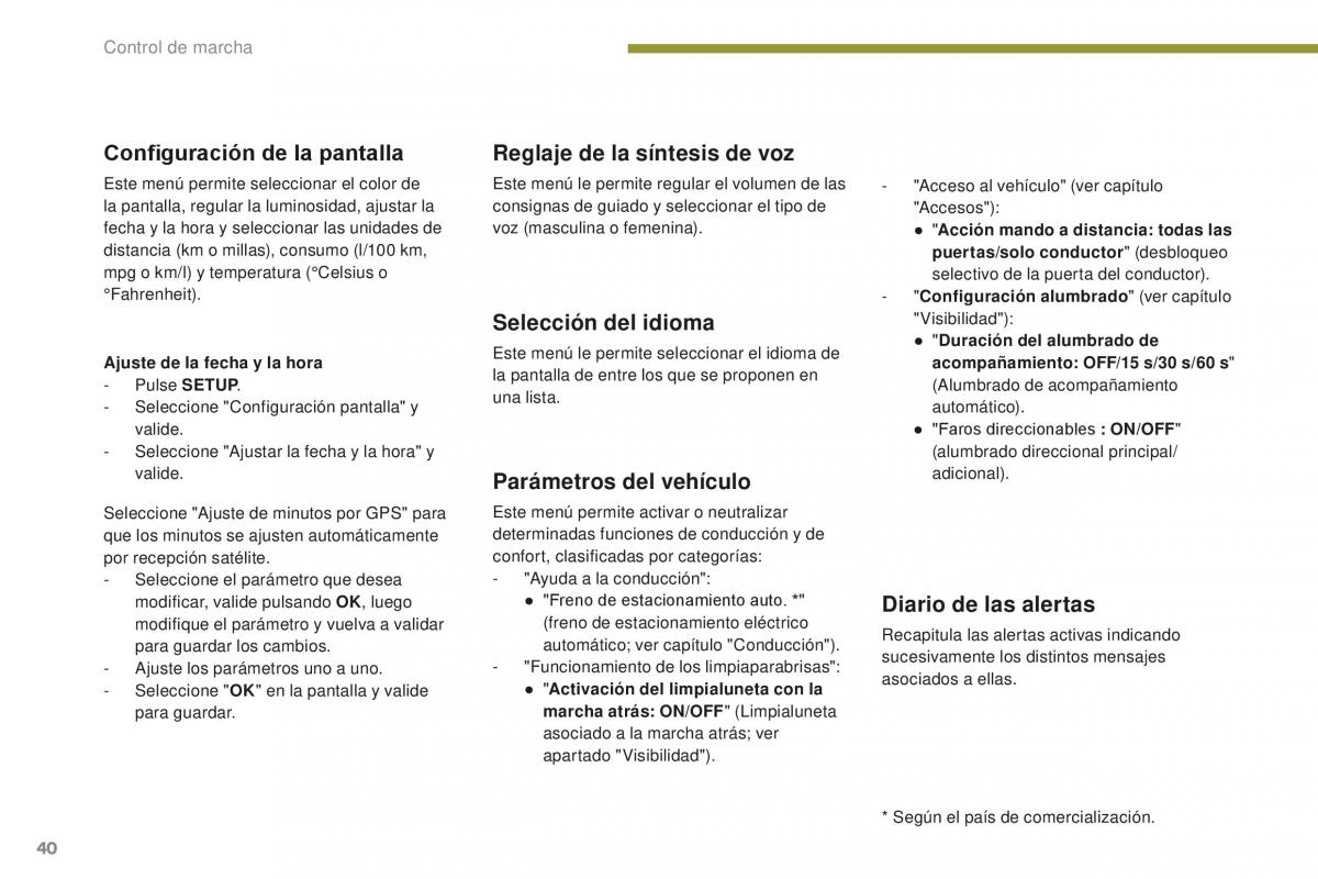 modificar, valide pulsando OK, luego ● "Freno de estacionamiento auto. *" Diario de las alertas
