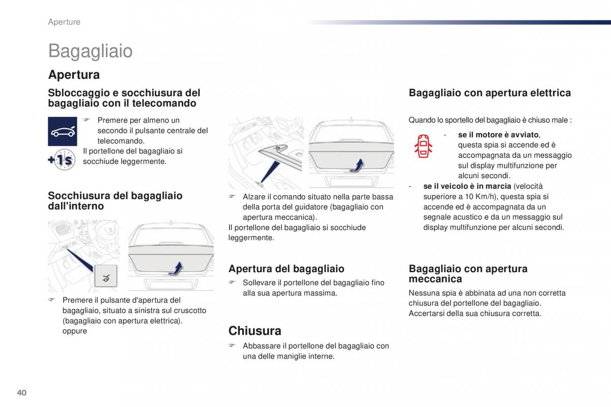 (bagagliaio con apertura elettrica). Accertarsi della sua chiusura corretta.