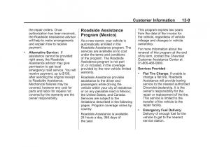 telephone numbers for Chevrolet due to scheduling conflicts, the existing Roadside Assistance