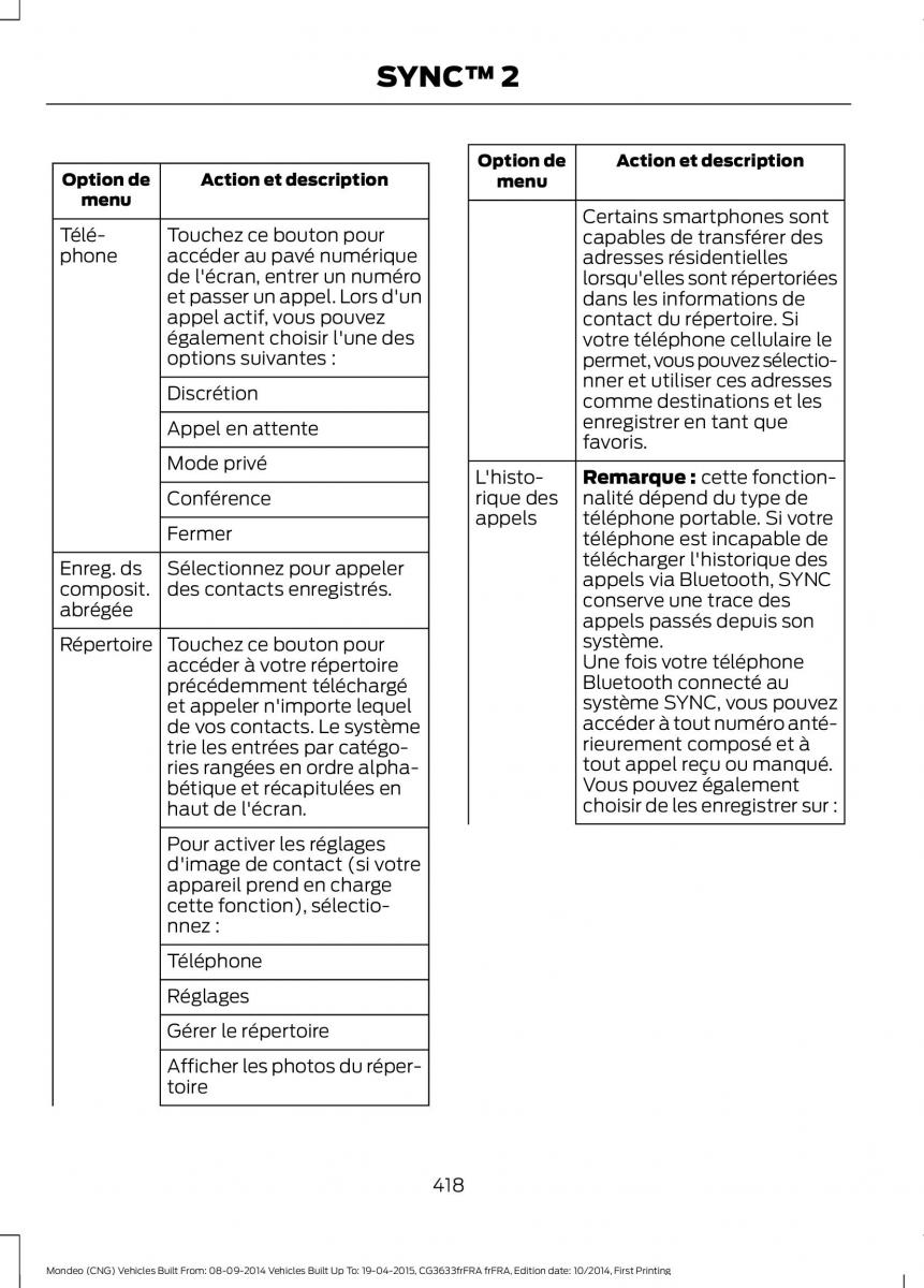 Mondeo (CNG) Vehicles Built From: 08-09-2014 Vehicles Built Up To: 19-04-2015, CG3633frFRA frFRA, Edition date: 10/2014, First Printing