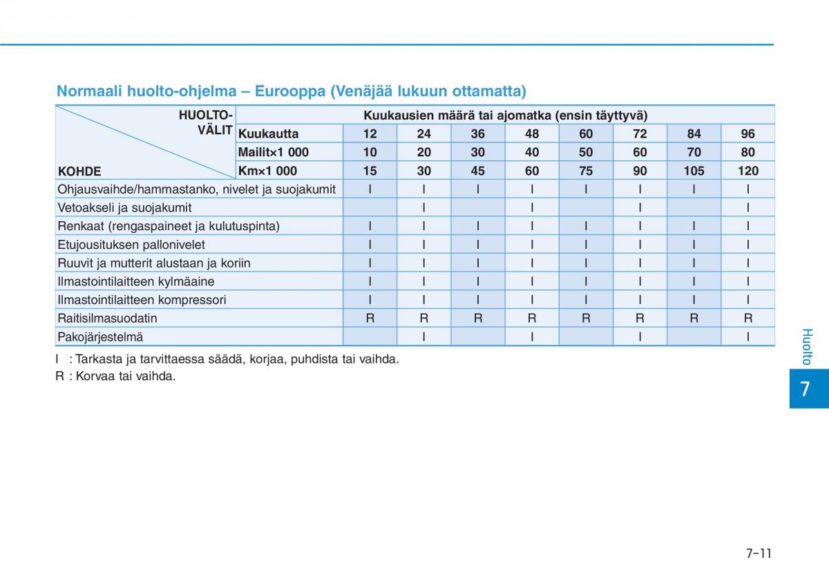 Normaali huolto-ohjelma – Eurooppa (Venäjää lukuun ottamatta)