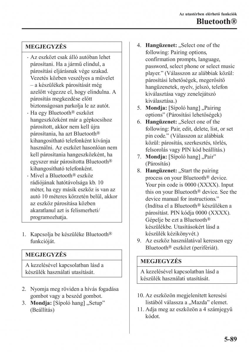 párosítania, ha azt Bluetooth pin code.” (Válasszon az alábbiak