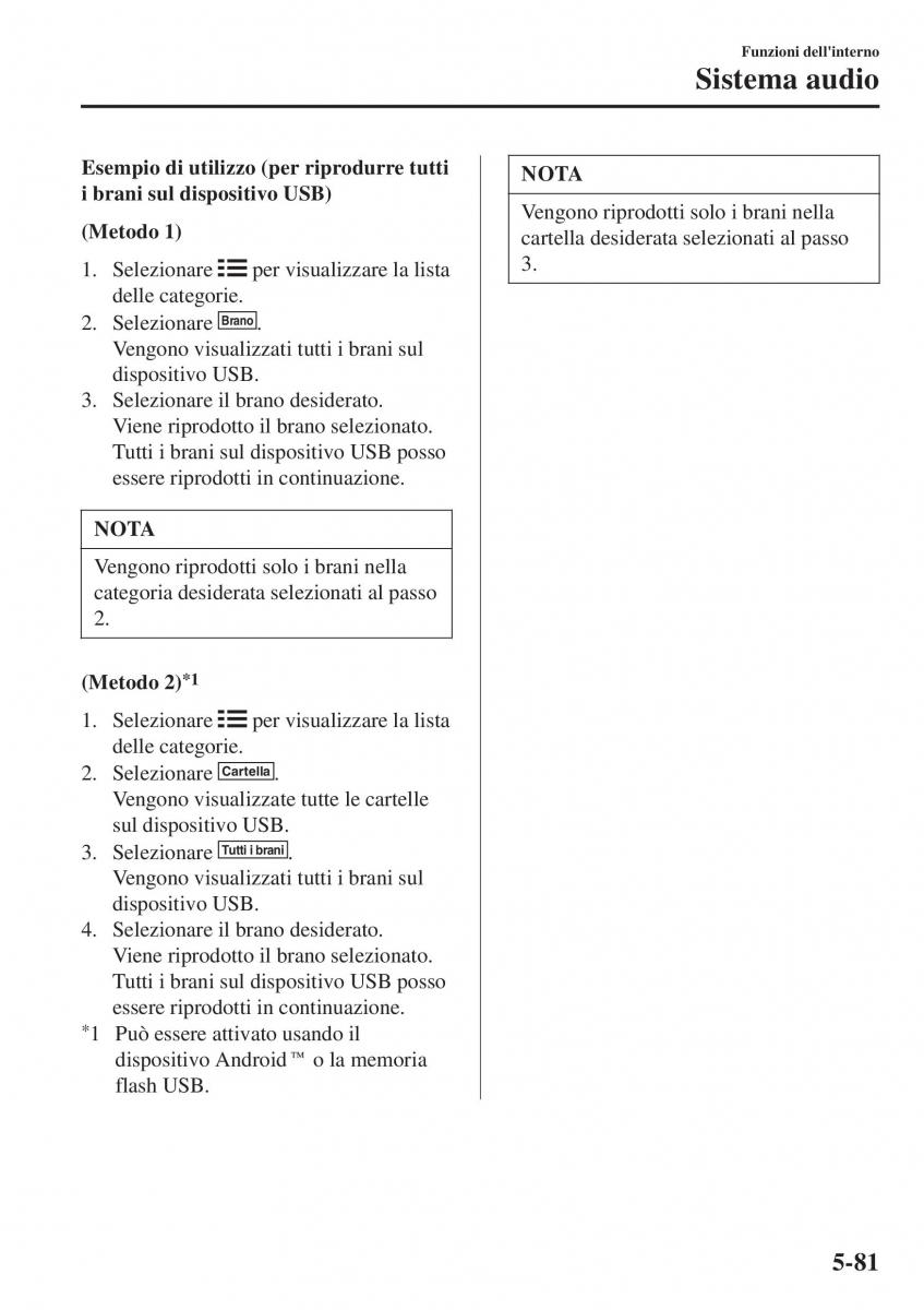 i brani sul dispositivo USB) Vengono riprodotti solo i brani nella