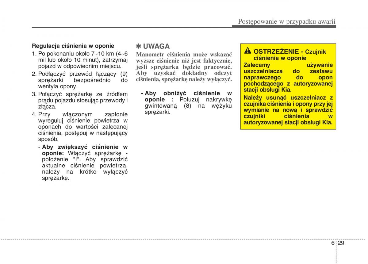 oponach do wartości zalecanej autoryzowanej stacji obsługi Kia.