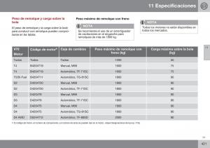 V70 Código de motor Caja de cambios Peso máximo de remolque con Carga máxima sobre la bola