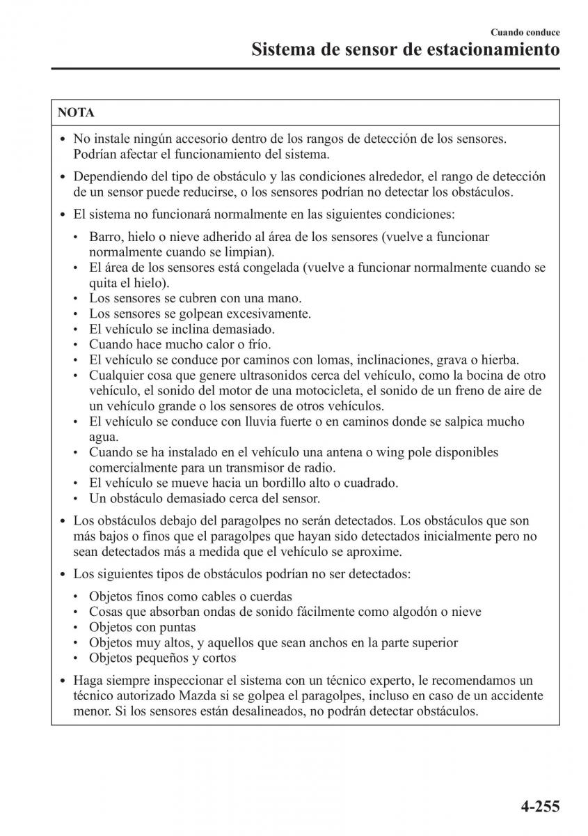 de un sensor puede reducirse, o los sensores podrían no detectar los obstáculos.
