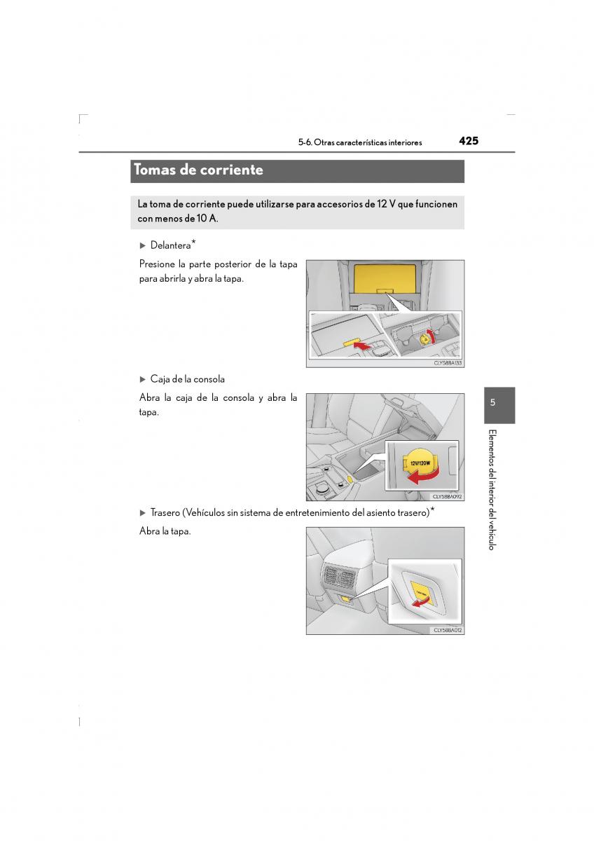 La toma de corriente puede utilizarse para accesorios de 12 V que funcionen