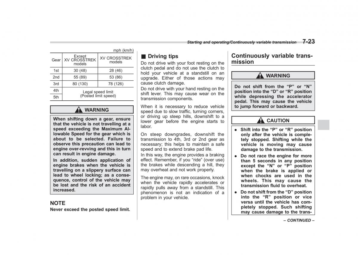 Except XVCROSSTREK &Driving tips Continuously variable trans-