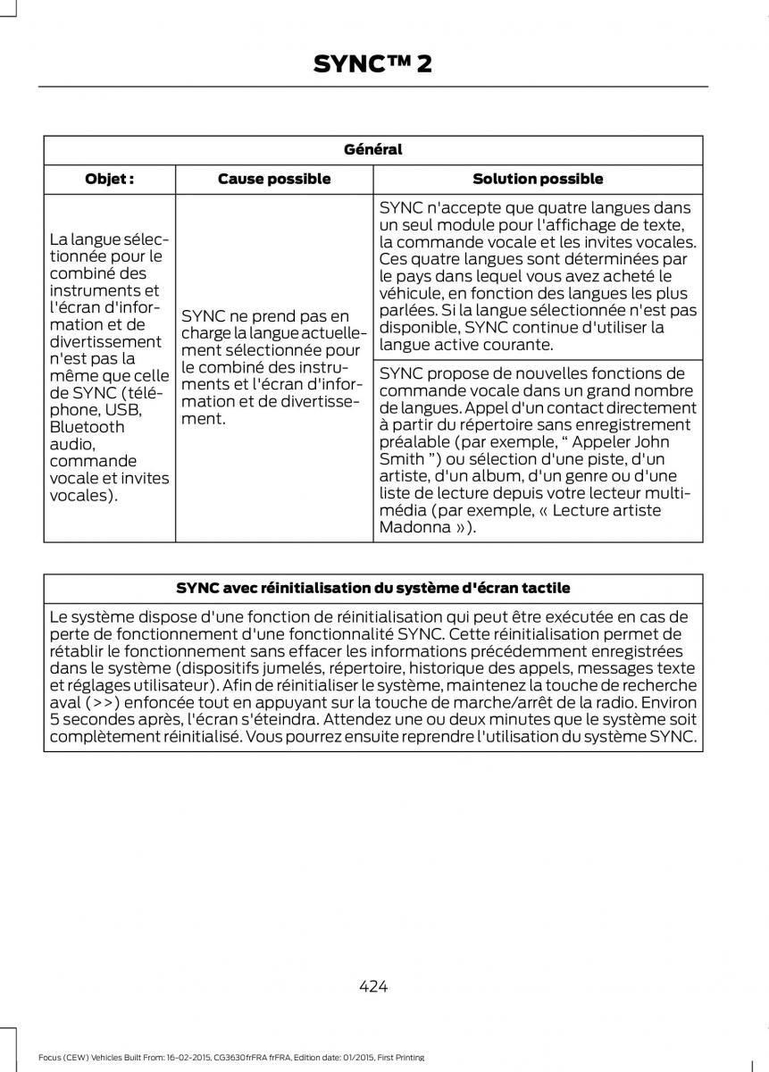 mation et de SYNC ne prend pas en parlées. Si la langue sélectionnée n'est pas