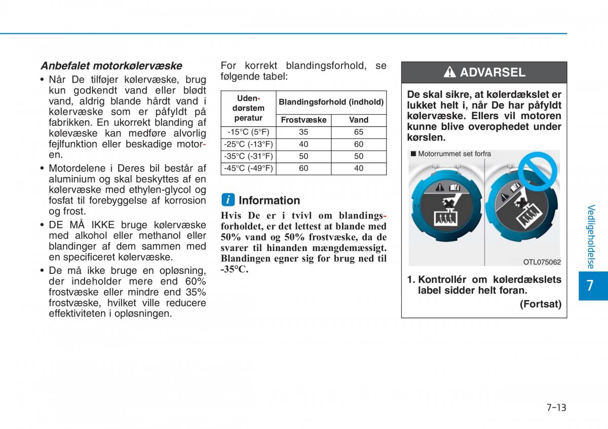 Anbefalet motorkølervæske For korrekt blandingsforhold, se ADVARSEL