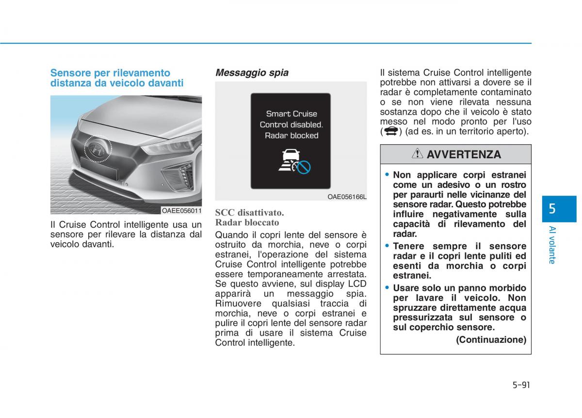 Sensore per rilevamento Messaggio spia Il sistema Cruise Control intelligente