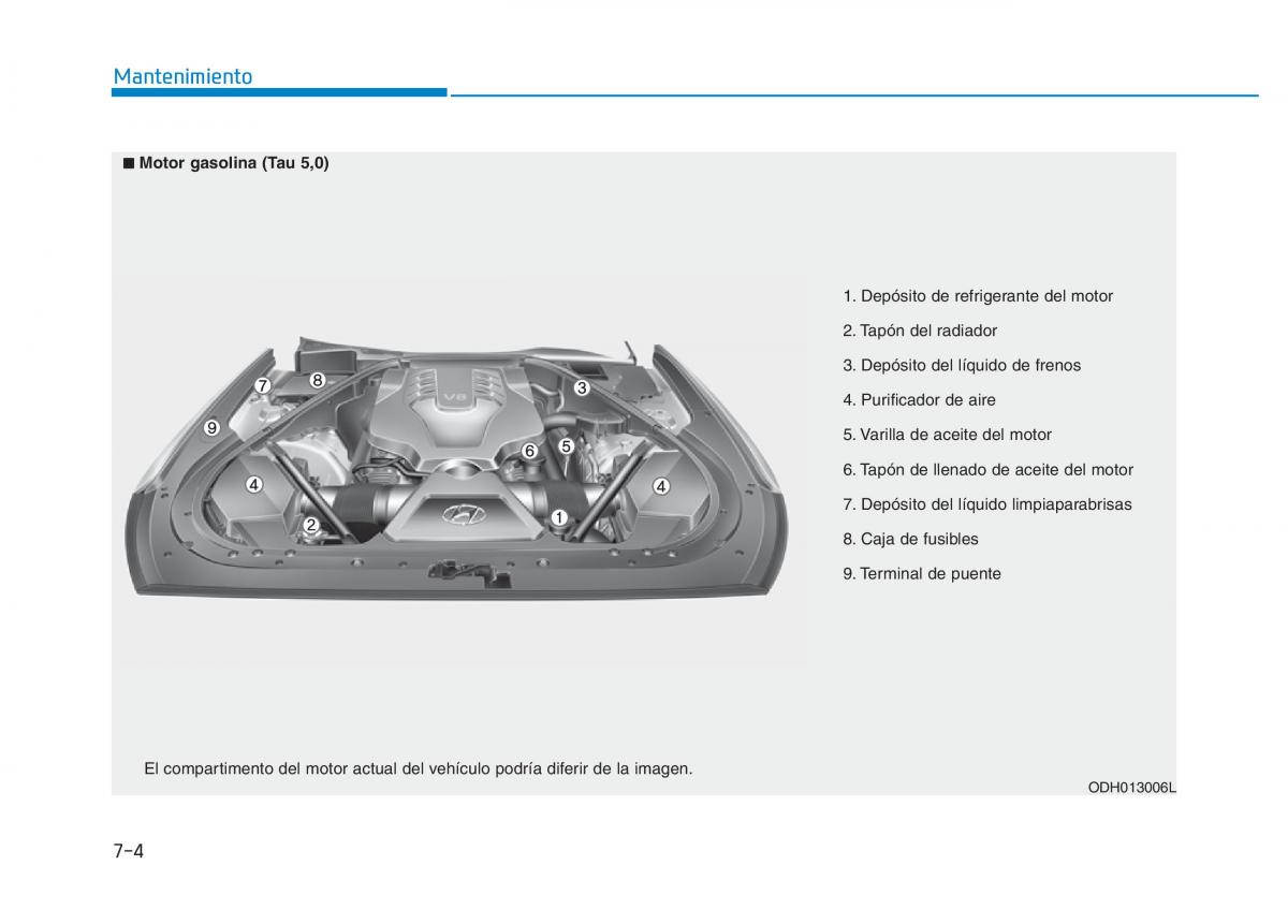 El compartimento del motor actual del vehículo podría diferir de la imagen.