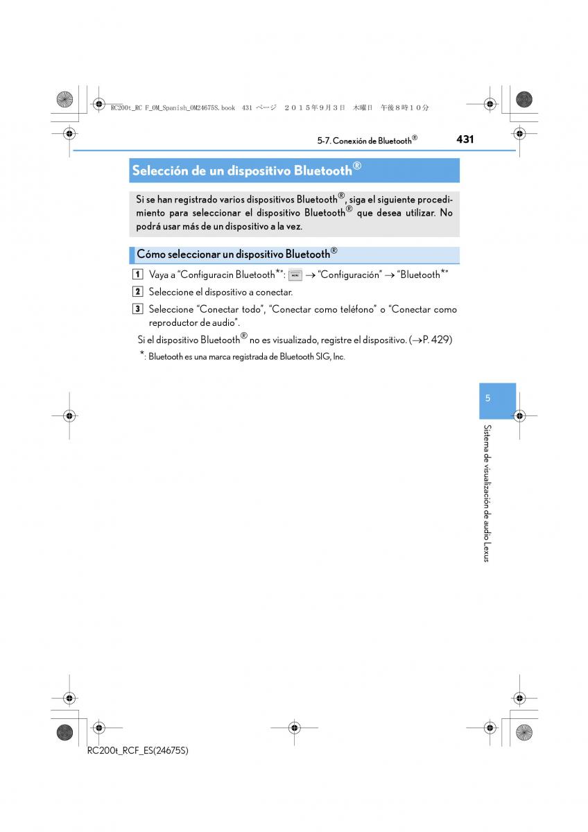 RC200t_RC F_OM_Spanish_OM24675S.book 431 ページ 㧞㧜㧝5年㧥月㧟日 木曜日 午後㧤時㧝㧜分