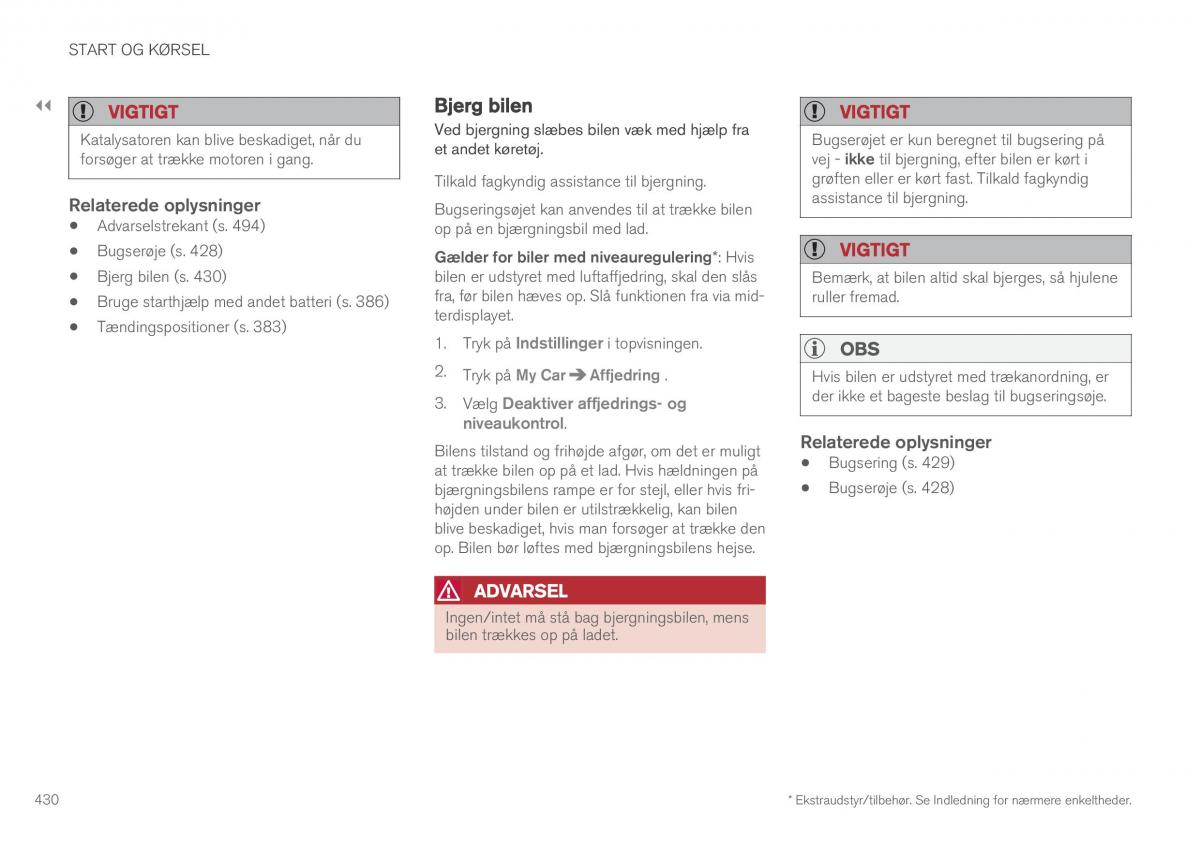 Bjerg bilen (s. 430) bilen er udstyret med luftaffjedring, skal den slåsBemærk, at bilen altid skal bjerges, så hjulene