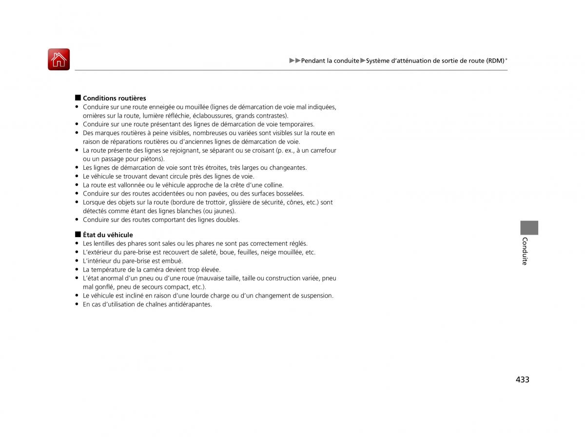 uuPendant la conduiteuSystème d’atténuation de sortie de route (RDM)*