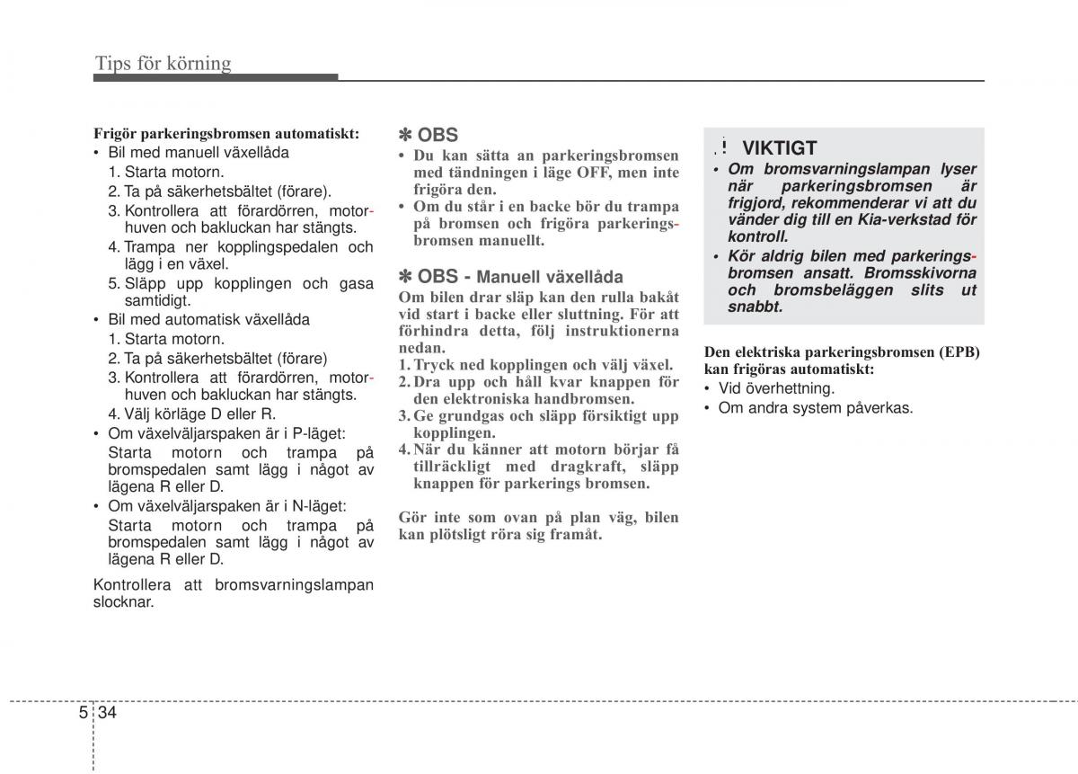 Frigör parkeringsbromsen automatiskt:✽✽ OBS VIKTIGT